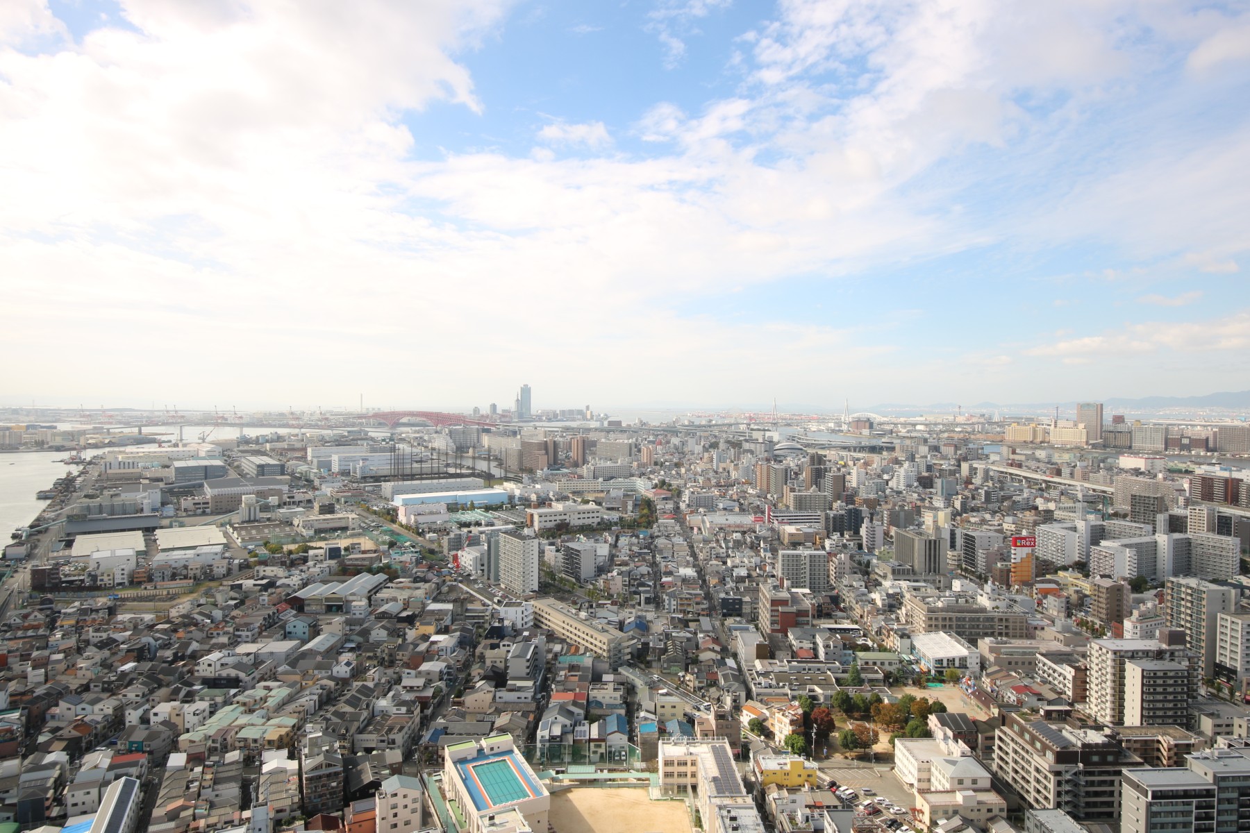 港区のランドマークタワー!41階建て!38階部分より大阪湾を望む羨望の眺望は東(ハルカス)から南、そして西(USJ)への眺望!陽当たり・通風良好です♪お部屋までは高層階専用エレベータで楽々移動可!