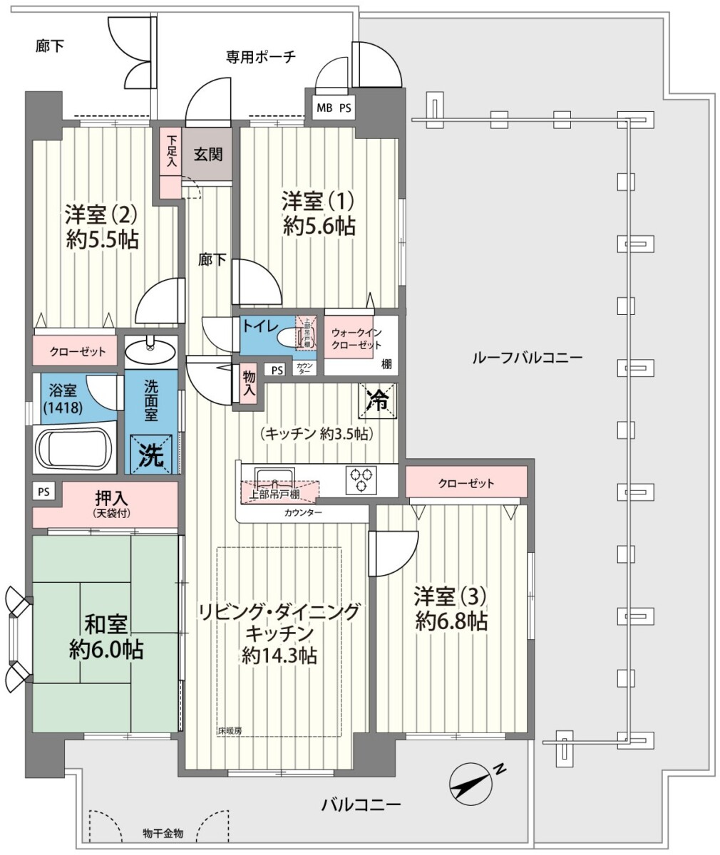 ルーフバルコニー&玄関専用ポーチ付!81.16m2の角部屋4LDKプラン!